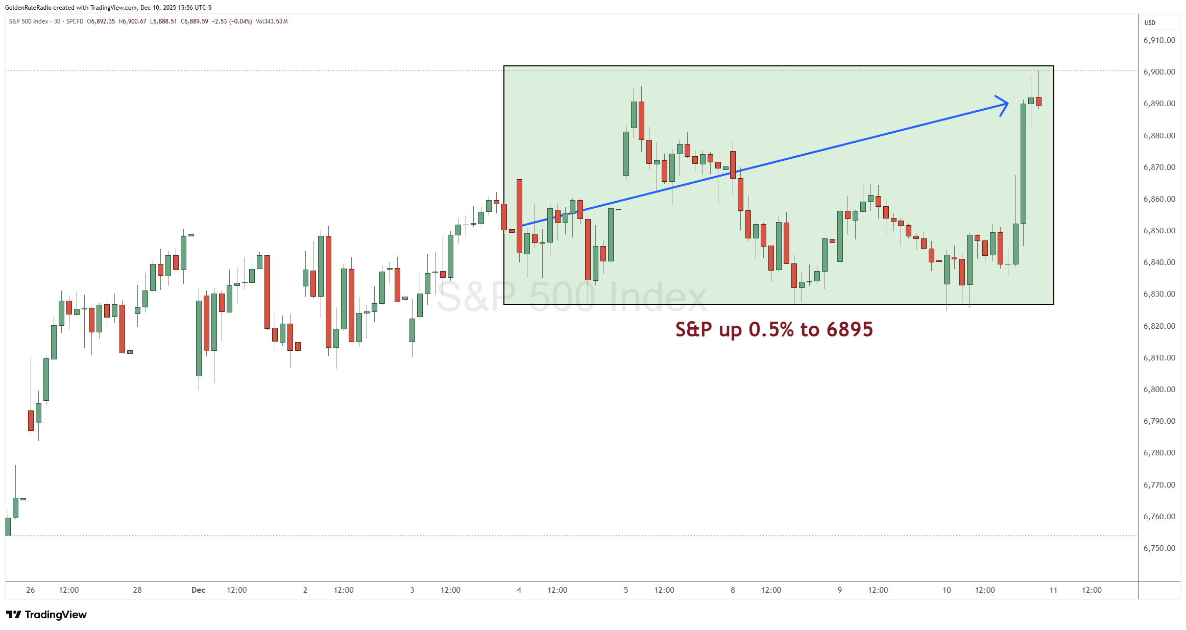 The S&P 500 is up about 0.5% sitting at 6,895, although the index hasn’t done much since Thanksgiving.