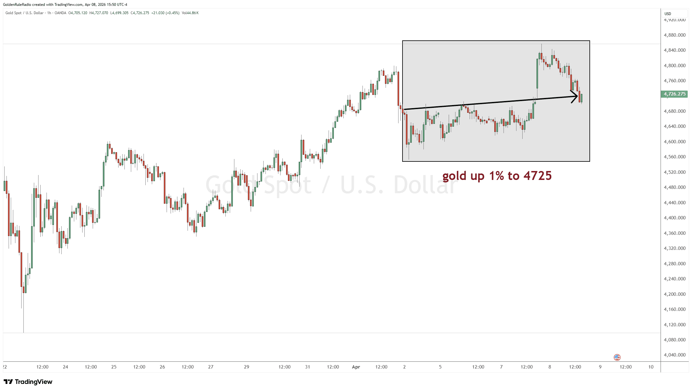 The price of gold is up 1%, sitting at $4,725. It is continuing its climb up and there’s a few different things it could do from here.