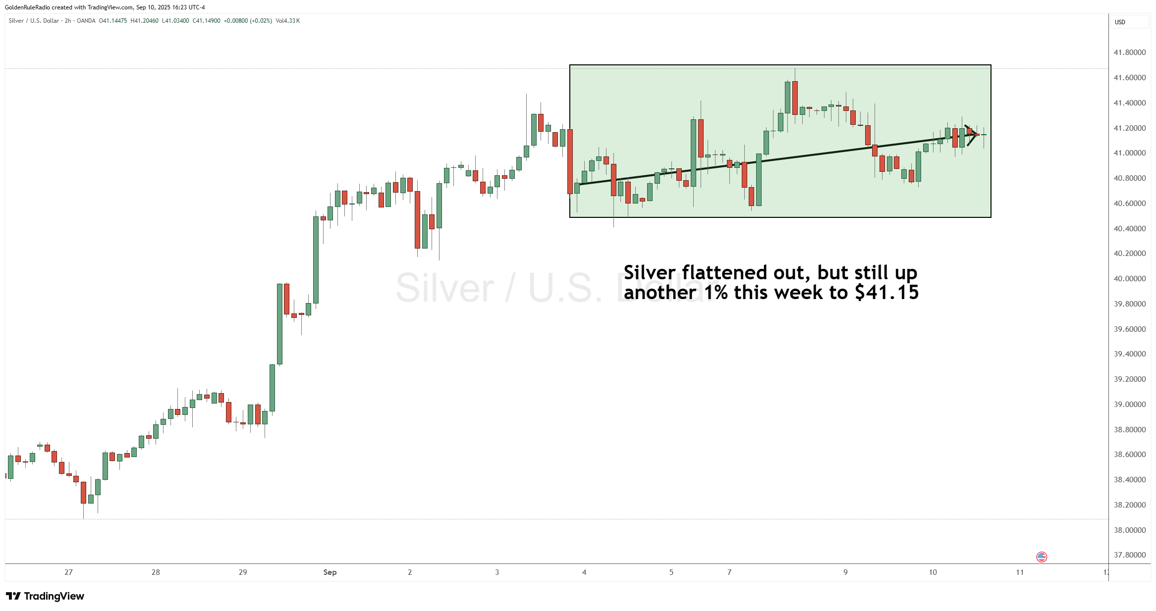 While gold has taken the spotlight, silver is also up 1% this week and nearly 40% since April, but remains about 20% below its all-time high. This “lag” is generating interest among investors looking for leveraged upside as markets evolve.