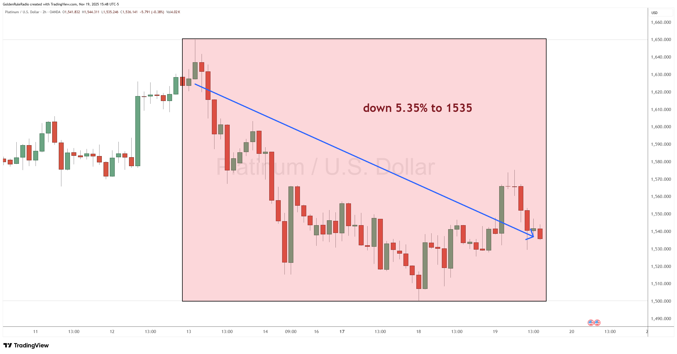 Platinum is up 5.5% to $1,535. It seems to be a little stuck in the mid $1,500 range.
