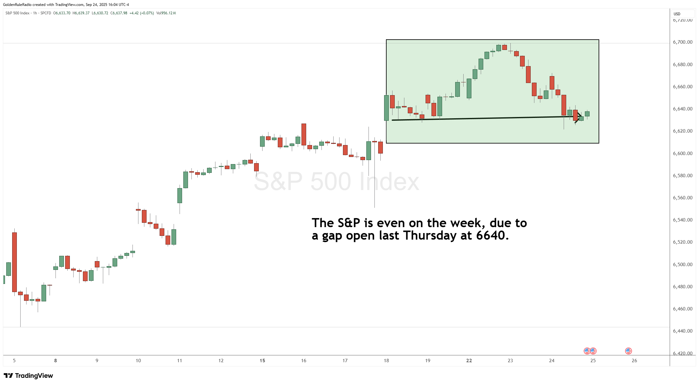 The S&P 500 is just about flat this week, currently sitting at 6,640. However, intraweek the index rose up after the Fed announcement.