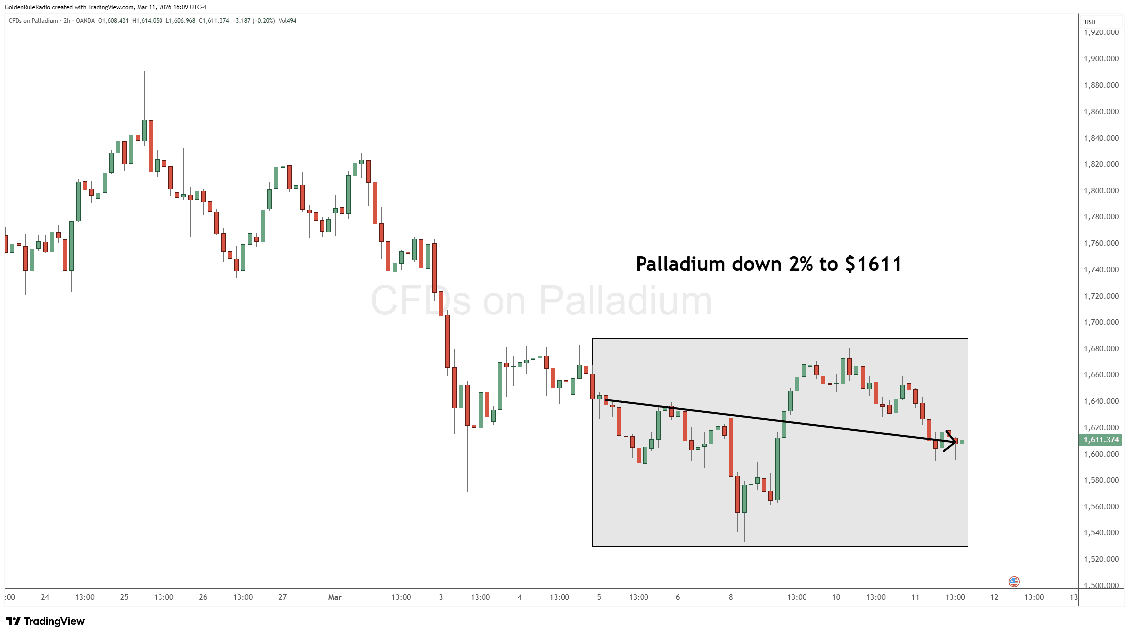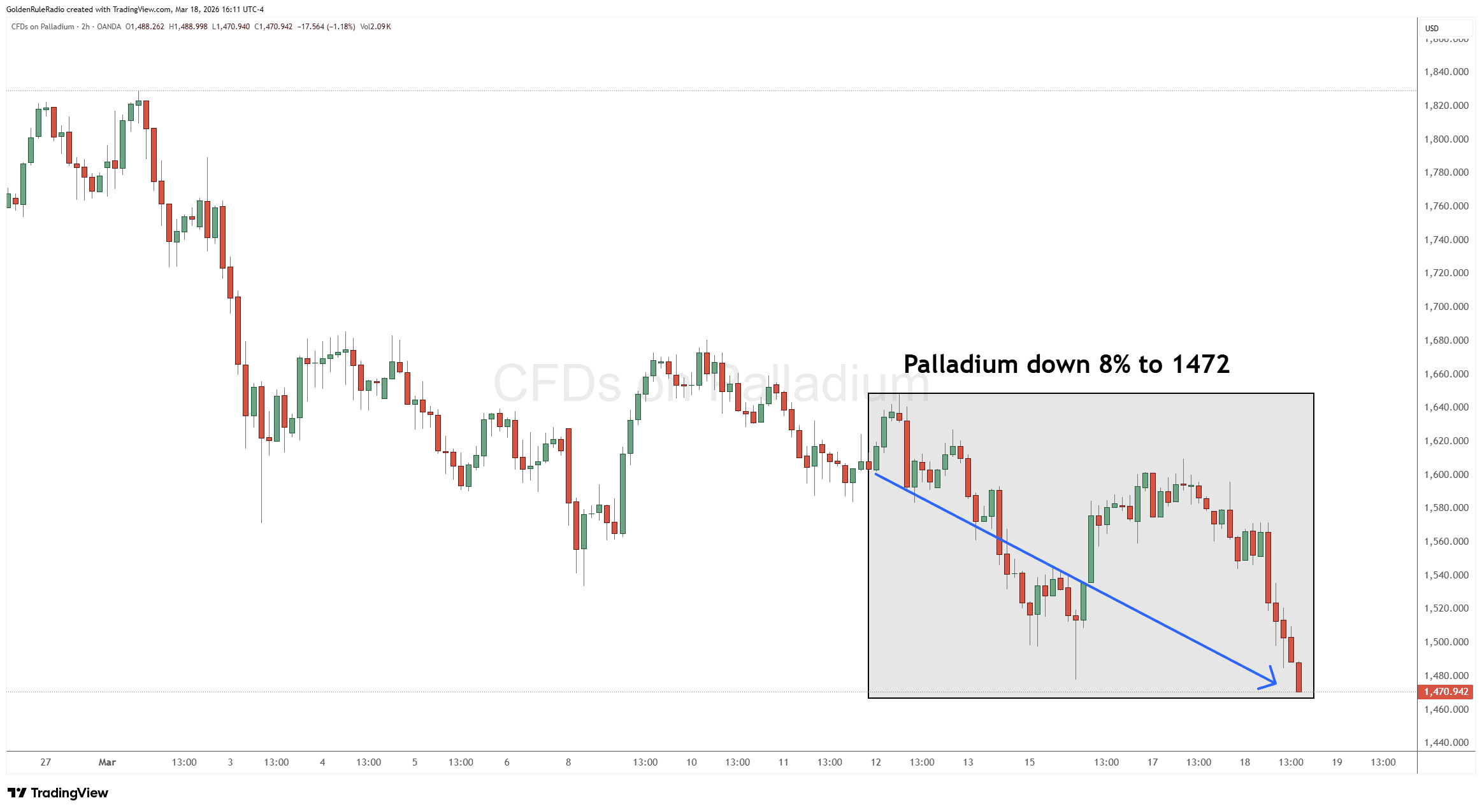 Palladium is down 8%, currently sitting at $1,654.