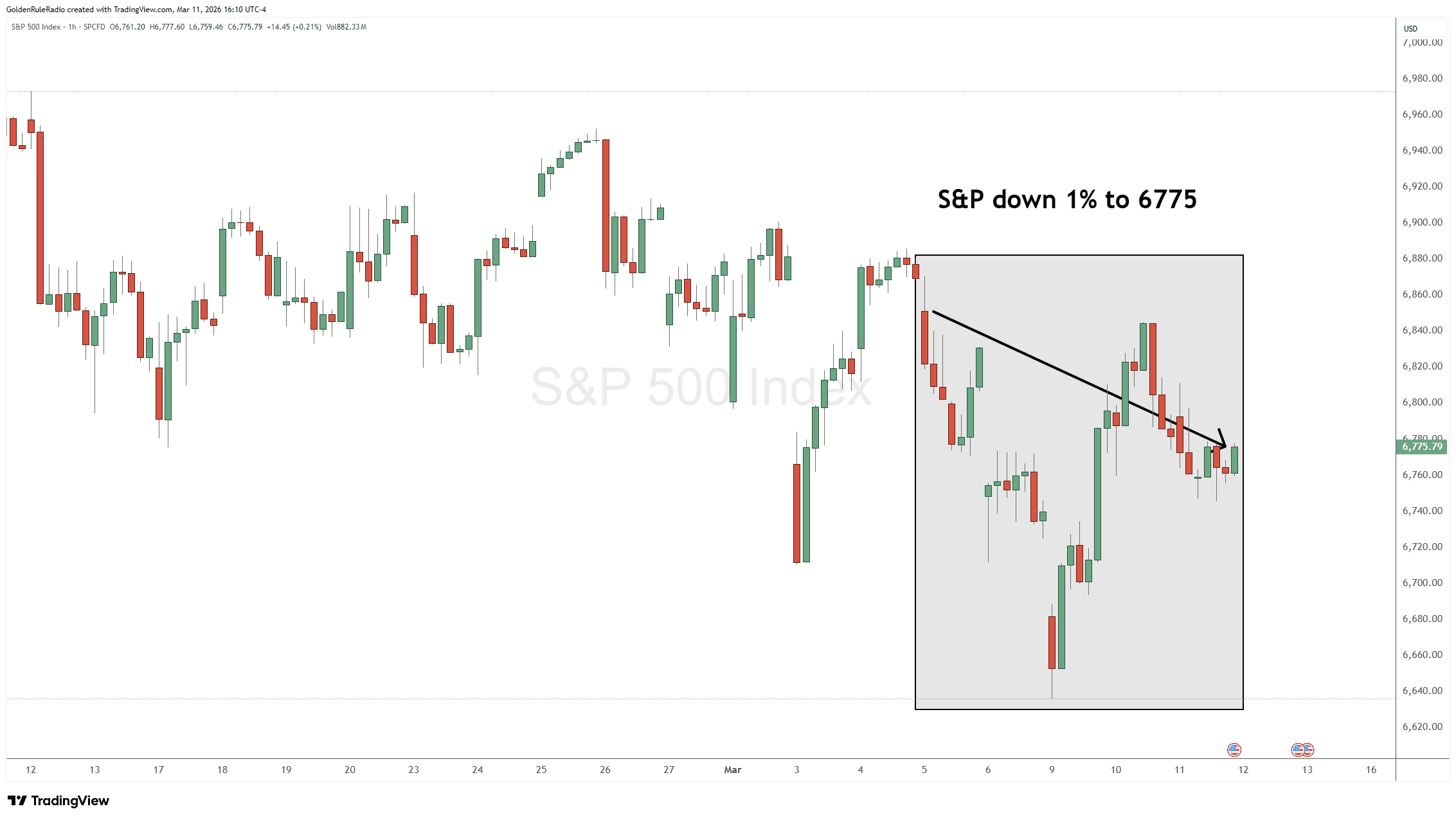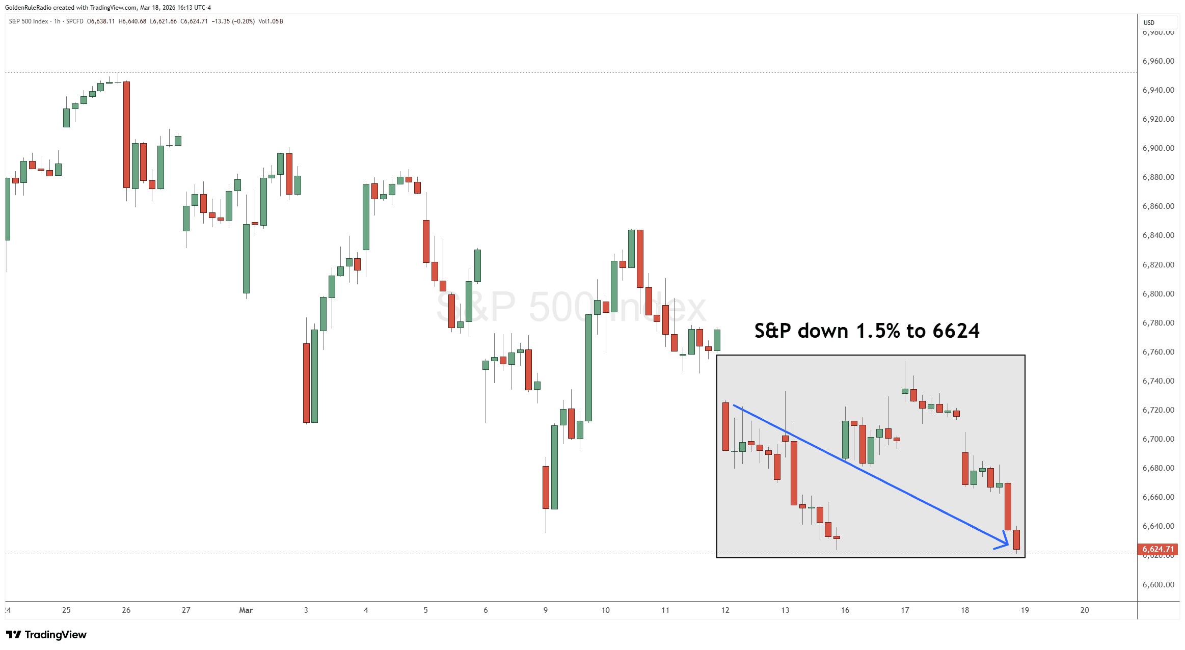 Looking over at the paper markets…The S&P 500 is down 1% this week to 6,775.